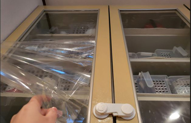 窓や食器棚のガラスが割れると、破片によるけがや逃げ遅れの原因になります。百円均一ショップなどで売っている「飛散防止フィルム」を貼るとガラスが割れたときに破片が飛び散らないだけでなく、ガラスが割れにくくなり、外から飛んできたものが室内に入るのも防いでくれます。とはいえ、ガラスが汚れていると貼り付けられないため、大掃除のついでに貼るのがおすすめ。難しければ片付けにも重宝する養生テープを常備しておくとよいでしょう。台風前に×印の形に貼れば飛散防止にもなります。そして重ね技としてカーテンは必ず装着してください。もし買い替えを考えているなら床より5センチ長めにしておけば割れたガラスが部屋に飛び散るのを防ぐこともできます。照明器具などもできればガラスから樹脂製のものに変えてみたり、割れた際に飛び散りにくいような素材でできたものに変えるのもよいと思います。飛散防止スプレーなどがホームセンターで売っているので、それを使うこともよいでしょう。
