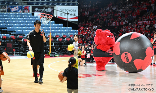 【試合観戦(合計100名様)】 A.子どもバスケ教室(小学生) 30名様 11:10~12:00/15:05~ティップオフ 試合終了後、コート上でアルバルク東京の選手との写真撮影会を予定。 ※同伴者含め1組4名様迄 ※小学生対象。必ず、保護者同伴でお願いします。 ※応募時に、バスケ経験の有無を連絡事項にご入力ください。 B.試合前イベント「プライムタイム」 4組16名様 試合開始47分前頃 試合開始前にコートで行われるイベントにご家族でご参加いただきます。 ※他のお客様と一緒にご参加いただきます。 ※小学生以上のご家族4名様でエントリーください。 ※室内履きをご用意ください。 ※イベントご参加中の撮影行為は禁止です。 C.ハイファイブキッズ 3名様 選手入場時に選手たちを出迎え、選手たちとハイファイブできるイベント! ※同伴者含め1組4名様迄 ※小学生対象。必ず、保護者同伴でお願いします。 ※保護者の方は集合場所より先へはご同伴いただけません。 ※イベントご参加中の撮影行為は禁止です。 【テラススイート観戦】 テラススイート席での観戦(昼食付)(12組24名様) 13:00~/15:05~ティップオフ 小分けビュッフェ形式でのお食事・お飲み物をご提供予定。 ※中学生以上。1組2名様でご応募ください。 ※アルコールあり。 |